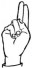 На ћирилици написано АНДРЕА ЛУДОШКИ састоји се из 13 слова [?]. Исписано ћириличном једноручном азбуком за глувонеме: